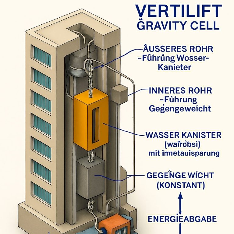 Vertikales Energiespeichersystem über Gravitation für Gebäude, kommunale / städtische Infrastruktur und nachhaltige Energieprojekte / Notfallszenarien #ID-10