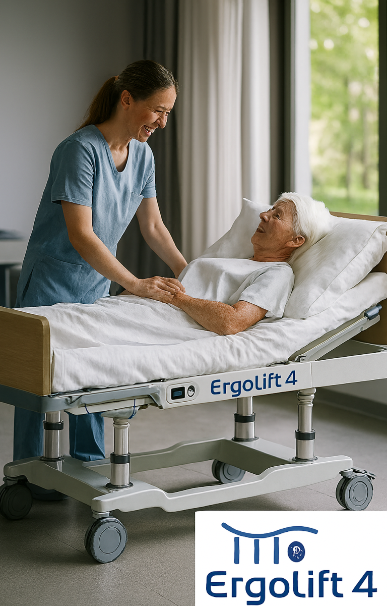 Adaptives hydraulisches Hebe- und Neigesystem für Kranken- und Pflegebetten.