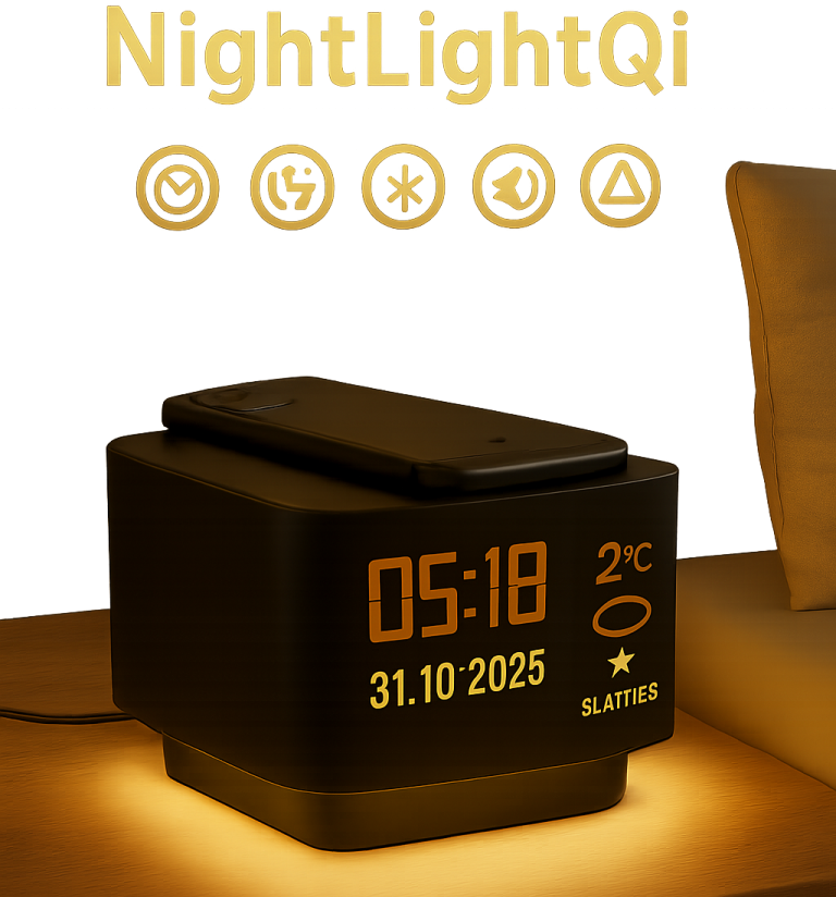 (Nachttischlampe, Nachtlicht, Uhr, Wetterstation, Qi-