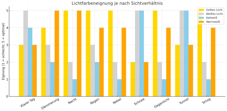 1. Warum ist gelbes Licht im Nebel besser sichtbar als