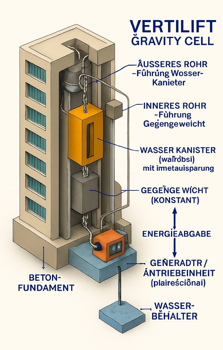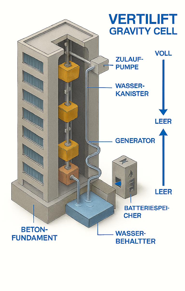 Vertikales Energiespeichersystem über Gravitation